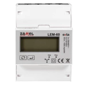 Licznik LEM-60 to zaawansowane urządzenie do monitorowania parametrów instalacji trójfazowej takich jak moc czynna, moc bierna, napięcie i prąd. Dzięki dwukierunkowemu pomiarowi licznik pozwala na monitorowanie zarówno poboru jak i produkcji energii czynnej. LEM-60 posiada czytelny, podświetlany wyświetlacz umożliwiający prezentację mierzonych parametrów oraz możliwość komunikacji poprzez Modbus RTU (RS485) i wyjście impulsowe. Obudowa umożliwia montaż na szynie TH35 (DIN).