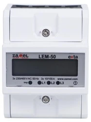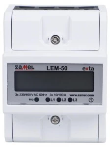 Licznik LEM-50 służy do monitorowania zużycia energii elektrycznej sieci trójfazowej w zastosowaniach domowych, komercyjnych i przemysłowych. Mierzy i wyświetla zużycie energii elektrycznej czynnej wyrażonej w kWh. Licznik z łatwością można zamontować na szynie TH- 35 (DIN). Osłony umożliwiają zaplombowanie. Podstawowe cechy urządzenia to: