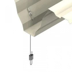 Zestaw składający się z linki stalowej Ø 1,3mm z przetyczką TG15 mocowaną w otworze przelotowym (np. blachy trapezowej) oraz szybkim i łatwym w obsłudze zaciskiem typu 4Sprint wyposażonym w zintegrowany system zwalniania blokady linki.