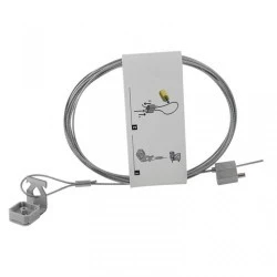 Kompletny zestaw do mocowania np. głośników DSO, składający się z uchwyty sufitowego AAT, stalowej linki o średnicy 1,5mm i zacisku mocującego wyposażonego w mechaniczny system zwalniania linki. Zestaw linkowy umożliwia szybki i łatwy montaż za pomocą osadzaka do wbijania gwoździ do podłoży betonowych i stalowych.