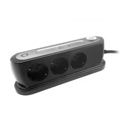 Nabiurkowa listwa zasilająca to doskonałe i praktyczne urządzenie, które umożliwia podłączenie sprzętu różnego typu, również tego ładowanego przez port USB. Posiada 3 gniazda prądowe z zabezpieczeniem przeciwprzepięciowym (typ 3) oraz 2 porty USB, które tak wkomponowano w obudowę urządzenia, by zajmowało ono mało miejsca na blacie biurka. Listwa dodatkowo wyposażona jest w wyłącznik główny oraz kabel zasilający o długości 1,4m.