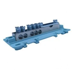 Listwa ekwipotencjalna EPS 4 A - niebieska z osłoną. Przewody uziemiające FeZn przed połączeniem należy wyrównać i ukształtować w zależności od warunków umieszczenia listwy zaciskowej EPS 4. Przewody nie mogą być „napięte” tak aby mogło dojść do wyrwania listwy zaciskowej z szyny TH lub podkładki (np. z szyny TH35 w KT250 położonej w ścianie obiektu). W miejscach gdzie nie można uniknąć „napięcia” przewodów wskazane jest żeby listwę zaciskową EPS 4 na szynie TH 35 pomocniczo zamocować za pomocą pasków ściągających (pasek ściągający przewleka się przez rogi listwy EPS 4, które pierwotnie są przeznaczone na śruby do mocowaniu na podkładce). Ponadto konieczne jest oczyszczenie przewodów od korozji powierzchniowej i zanieczyszczeń, które mogły się na nich osadzić w czasie montażu (farba po malowaniu, itp.). Listwa zaciskowa jest złożona z podkładki nośnej, mostka i osłony. Standard EN 60974-7-1, EN 62561-1. Osłona jest wyprodukowana z poliwęglanu (PC-EMERGE PC 8430-15), jest przeźroczysta, a tym samym umożliwia kontrolę wzrokową listwy zaciskowej (połączeń, opisów itp.).. Połączenie osłony z podkładką może być zabezpieczone plombą. Mostek jest wyprodukowany z przewodzącego mosiądzu Ms58 (CuZn39Pb3) z wykończeniem powierzchni zgodnie z normą ČSN EN ISO 4042-E2 (Ni-5m). Wykończenie powierzchni mostka – niklowe, umożliwia podłączenie przewodów miedzianych jak i aluminiowych (w starszych instalacjach). Miedziane i aluminiowe przewody nie mogą być łączone w jednym zacisku. Mostki mają otwory do podłączenia przewodów o przekroju znamionowym od 6 do 16mm2 . Podłączenie taśmy uziemiającej 30x4, 20x3, ew. okrągłego drutu uziemiającego Ø = 10mm wykonuje się za pomocą dwu śrub i podkładki. (jedynie w wariantach A, B). Nośna podkładka (podstawa) jest wyprodukowana z PA-Frianyl B63 VO w kolorze UN 7008 (szary). Podkłada nośna jest tak skonstruowana, aby było można listwę EPS 4 zamontować na szynie TH 35 poziomo i pionowo. Listwę EPS 4 można montować również na podkładce (bezpośrednio na ścianie) lub w puszkach elektroinstalacyjnych KO 125 E, KT 250 L itp. Śruba i podkładka są wyprodukowane ze stali. Podkładka ma powierzchnię wykończoną zgodnie z normą ČSN EN ISO 2081 - Fe/Zn8/A/T2. Śruby mają wykończenie powierzchni zgodnie z normą ČSN EN ISO 4042: A2K + pasywacja.