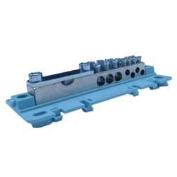 Listwa ekwipotencjalna EPS 4 B - niebieska z osłoną. Przewody uziemiające FeZn przed połączeniem należy wyrównać i ukształtować w zależności od warunków umieszczenia listwy zaciskowej EPS 4. Przewody nie mogą być „napięte” tak aby mogło dojść do wyrwania listwy zaciskowej z szyny TH lub podkładki (np. z szyny TH35 w KT250 położonej w ścianie obiektu). W miejscach gdzie nie można uniknąć „napięcia” przewodów wskazane jest żeby listwę zaciskową EPS 4 na szynie TH 35 pomocniczo zamocować za pomocą pasków ściągających (pasek ściągający przewleka się przez rogi listwy EPS 4, które pierwotnie są przeznaczone na śruby do mocowaniu na podkładce). Ponadto konieczne jest oczyszczenie przewodów od korozji powierzchniowej i zanieczyszczeń, które mogły się na nich osadzić w czasie montażu (farba po malowaniu, itp.). Listwa zaciskowa jest złożona z podkładki nośnej, mostka i osłony. Standard EN 60974-7-1, EN 62561-1. Osłona jest wyprodukowana z poliwęglanu (PC-EMERGE PC 8430-15), jest przeźroczysta, a tym samym umożliwia kontrolę wzrokową listwy zaciskowej (połączeń, opisów itp.).. Połączenie osłony z podkładką może być zabezpieczone plombą. Mostek jest wyprodukowany z przewodzącego mosiądzu Ms58 (CuZn39Pb3) z wykończeniem powierzchni zgodnie z normą ČSN EN ISO 4042-E2 (Ni-5m). Wykończenie powierzchni mostka – niklowe, umożliwia podłączenie przewodów miedzianych jak i aluminiowych (w starszych instalacjach). Miedziane i aluminiowe przewody nie mogą być łączone w jednym zacisku. Mostki mają otwory do podłączenia przewodów o przekroju znamionowym od 6 do 16mm2 . Podłączenie taśmy uziemiającej 30x4, 20x3, ew. okrągłego drutu uziemiającego Ø = 10mm wykonuje się za pomocą dwu śrub i podkładki. (jedynie w wariantach A, B). Nośna podkładka (podstawa) jest wyprodukowana z PA-Frianyl B63 VO w kolorze UN 7008 (szary). Podkłada nośna jest tak skonstruowana, aby było można listwę EPS 4 zamontować na szynie TH 35 poziomo i pionowo. Listwę EPS 4 można montować również na podkładce (bezpośrednio na ścianie) lub w puszkach elektroinstalacyjnych KO 125 E, KT 250 L itp. Śruba i podkładka są wyprodukowane ze stali. Podkładka ma powierzchnię wykończoną zgodnie z normą ČSN EN ISO 2081 - Fe/Zn8/A/T2. Śruby mają wykończenie powierzchni zgodnie z normą ČSN EN ISO 4042: A2K + pasywacja.