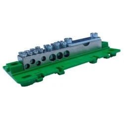 Listwa ekwipotencjalna EPS 4 B - zielona z osłoną. Przewody uziemiające FeZn przed połączeniem należy wyrównać i ukształtować w zależności od warunków umieszczenia listwy zaciskowej EPS 4. Przewody nie mogą być „napięte” tak aby mogło dojść do wyrwania listwy zaciskowej z szyny TH lub podkładki (np. z szyny TH35 w KT250 położonej w ścianie obiektu). W miejscach gdzie nie można uniknąć „napięcia” przewodów wskazane jest żeby listwę zaciskową EPS 4 na szynie TH 35 pomocniczo zamocować za pomocą pasków ściągających (pasek ściągający przewleka się przez rogi listwy EPS 4, które pierwotnie są przeznaczone na śruby do mocowaniu na podkładce). Ponadto konieczne jest oczyszczenie przewodów od korozji powierzchniowej i zanieczyszczeń, które mogły się na nich osadzić w czasie montażu (farba po malowaniu, itp.). Listwa zaciskowa jest złożona z podkładki nośnej, mostka i osłony. Standard EN 60974-7-1, EN 62561-1. Osłona jest wyprodukowana z poliwęglanu (PC-EMERGE PC 8430-15), jest przeźroczysta, a tym samym umożliwia kontrolę wzrokową listwy zaciskowej (połączeń, opisów itp.).. Połączenie osłony z podkładką może być zabezpieczone plombą. Mostek jest wyprodukowany z przewodzącego mosiądzu Ms58 (CuZn39Pb3) z wykończeniem powierzchni zgodnie z normą ČSN EN ISO 4042-E2 (Ni-5m). Wykończenie powierzchni mostka – niklowe, umożliwia podłączenie przewodów miedzianych jak i aluminiowych (w starszych instalacjach). Miedziane i aluminiowe przewody nie mogą być łączone w jednym zacisku. Mostki mają otwory do podłączenia przewodów o przekroju znamionowym od 6 do 16mm2 . Podłączenie taśmy uziemiającej 30x4, 20x3, ew. okrągłego drutu uziemiającego Ø = 10mm wykonuje się za pomocą dwu śrub i podkładki. (jedynie w wariantach A, B). Nośna podkładka (podstawa) jest wyprodukowana z PA-Frianyl B63 VO w kolorze UN 7008 (szary). Podkłada nośna jest tak skonstruowana, aby było można listwę EPS 4 zamontować na szynie TH 35 poziomo i pionowo. Listwę EPS 4 można montować również na podkładce (bezpośrednio na ścianie) lub w puszkach elektroinstalacyjnych KO 125 E, KT 250 L itp. Śruba i podkładka są wyprodukowane ze stali. Podkładka ma powierzchnię wykończoną zgodnie z normą ČSN EN ISO 2081 - Fe/Zn8/A/T2. Śruby mają wykończenie powierzchni zgodnie z normą ČSN EN ISO 4042: A2K + pasywacja.
