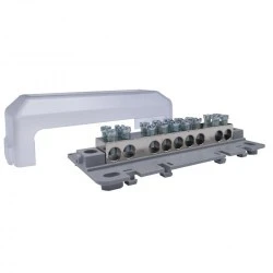 Listwa ekwipotencjalna EPS 4 C - szara z osłoną. Przewody uziemiające FeZn przed połączeniem należy wyrównać i ukształtować w zależności od warunków umieszczenia listwy zaciskowej EPS 4. Przewody nie mogą być „napięte” tak aby mogło dojść do wyrwania listwy zaciskowej z szyny TH lub podkładki (np. z szyny TH35 w KT250 położonej w ścianie obiektu). W miejscach gdzie nie można uniknąć „napięcia” przewodów wskazane jest żeby listwę zaciskową EPS 4 na szynie TH 35 pomocniczo zamocować za pomocą pasków ściągających (pasek ściągający przewleka się przez rogi listwy EPS 4, które pierwotnie są przeznaczone na śruby do mocowaniu na podkładce). Ponadto konieczne jest oczyszczenie przewodów od korozji powierzchniowej i zanieczyszczeń, które mogły się na nich osadzić w czasie montażu (farba po malowaniu, itp.). Listwa zaciskowa jest złożona z podkładki nośnej, mostka i osłony. Standard EN 60974-7-1, EN 62561-1. Osłona jest wyprodukowana z poliwęglanu (PC-EMERGE PC 8430-15), jest przeźroczysta, a tym samym umożliwia kontrolę wzrokową listwy zaciskowej (połączeń, opisów itp.).. Połączenie osłony z podkładką może być zabezpieczone plombą. Mostek jest wyprodukowany z przewodzącego mosiądzu Ms58 (CuZn39Pb3) z wykończeniem powierzchni zgodnie z normą ČSN EN ISO 4042-E2 (Ni-5m). Wykończenie powierzchni mostka – niklowe, umożliwia podłączenie przewodów miedzianych jak i aluminiowych (w starszych instalacjach). Miedziane i aluminiowe przewody nie mogą być łączone w jednym zacisku. Mostki mają otwory do podłączenia przewodów o przekroju znamionowym od 6 do 16mm2 . Podłączenie taśmy uziemiającej 30x4, 20x3, ew. okrągłego drutu uziemiającego Ø = 10mm wykonuje się za pomocą dwu śrub i podkładki. (jedynie w wariantach A, B). Nośna podkładka (podstawa) jest wyprodukowana z PA-Frianyl B63 VO w kolorze UN 7008 (szary). Podkłada nośna jest tak skonstruowana, aby było można listwę EPS 4 zamontować na szynie TH 35 poziomo i pionowo. Listwę EPS 4 można montować również na podkładce (bezpośrednio na ścianie) lub w puszkach elektroinstalacyjnych KO 125 E, KT 250 L itp. Śruba i podkładka są wyprodukowane ze stali. Podkładka ma powierzchnię wykończoną zgodnie z normą ČSN EN ISO 2081 - Fe/Zn8/A/T2. Śruby mają wykończenie powierzchni zgodnie z normą ČSN EN ISO 4042: A2K + pasywacja.