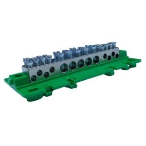 Listwa ekwipotencjalna EPS 4 D - zielona z osłoną. Przewody uziemiające FeZn przed połączeniem należy wyrównać i ukształtować w zależności od warunków umieszczenia listwy zaciskowej EPS 4. Przewody nie mogą być „napięte” tak aby mogło dojść do wyrwania listwy zaciskowej z szyny TH lub podkładki (np. z szyny TH35 w KT250 położonej w ścianie obiektu). W miejscach gdzie nie można uniknąć „napięcia” przewodów wskazane jest żeby listwę zaciskową EPS 4 na szynie TH 35 pomocniczo zamocować za pomocą pasków ściągających (pasek ściągający przewleka się przez rogi listwy EPS 4, które pierwotnie są przeznaczone na śruby do mocowaniu na podkładce). Ponadto konieczne jest oczyszczenie przewodów od korozji powierzchniowej i zanieczyszczeń, które mogły się na nich osadzić w czasie montażu (farba po malowaniu, itp.). Listwa zaciskowa jest złożona z podkładki nośnej, mostka i osłony. Standard EN 60974-7-1, EN 62561-1. Osłona jest wyprodukowana z poliwęglanu (PC-EMERGE PC 8430-15), jest przeźroczysta, a tym samym umożliwia kontrolę wzrokową listwy zaciskowej (połączeń, opisów itp.).. Połączenie osłony z podkładką może być zabezpieczone plombą. Mostek jest wyprodukowany z przewodzącego mosiądzu Ms58 (CuZn39Pb3) z wykończeniem powierzchni zgodnie z normą ČSN EN ISO 4042-E2 (Ni-5m). Wykończenie powierzchni mostka – niklowe, umożliwia podłączenie przewodów miedzianych jak i aluminiowych (w starszych instalacjach). Miedziane i aluminiowe przewody nie mogą być łączone w jednym zacisku. Mostki mają otwory do podłączenia przewodów o przekroju znamionowym od 6 do 16mm2 . Podłączenie taśmy uziemiającej 30x4, 20x3, ew. okrągłego drutu uziemiającego Ø = 10mm wykonuje się za pomocą dwu śrub i podkładki. (jedynie w wariantach A, B). Nośna podkładka (podstawa) jest wyprodukowana z PA-Frianyl B63 VO w kolorze UN 7008 (szary). Podkłada nośna jest tak skonstruowana, aby było można listwę EPS 4 zamontować na szynie TH 35 poziomo i pionowo. Listwę EPS 4 można montować również na podkładce (bezpośrednio na ścianie) lub w puszkach elektroinstalacyjnych KO 125 E, KT 250 L itp. Śruba i podkładka są wyprodukowane ze stali. Podkładka ma powierzchnię wykończoną zgodnie z normą ČSN EN ISO 2081 - Fe/Zn8/A/T2. Śruby mają wykończenie powierzchni zgodnie z normą ČSN EN ISO 4042: A2K + pasywacja.