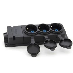 Listwa gumowa (TPE), rozgałęźnik potrójny 16A 2P+Z, kolor czarny, IP44 TRG-3SCH