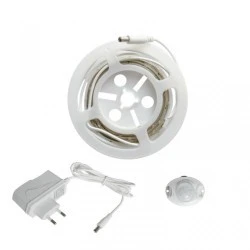 Listwa LED pojedyncza z czujnikiem ruchu i zmierzchowym. Regulowany czas świecenia: 30 s lub 10 min. Możliwość cięcia listwy LED. Długość: 120 cm. Listwa jest dostosowana do montażu w układach ze ściemniaczami. Strumień świetlny: 250 lm. Barwa światła: 3000 K (ciepły biały). Ilośc LED: 36 (niewymienne). Kąt świecenia: 120°. Współczynnik mocy: PF > 0,5. Współczynnik oddawania kolorów: Ra > 80. Napięcie wejściowe: AC 230 V ~ 50 Hz. Napięcie zasilające: DC 12 V = 500 mA. Stopień ochrony: IP20. Żywotność: do 30000 h. Liczba cykli włącz-wyłącz: do 30000. Czas nagrzewania się lampy: pomijalny. Zasięg czujnika ruchu: do 3,5 m. Kąt detekcji ruchu: 100°.