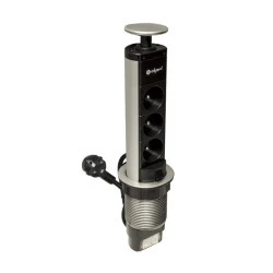Biurkowy przedłużacz wpuszczany fi 60mm czarny 3x gniazdo z/u AE-BPW3U60-20