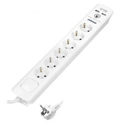istwa przeciwprzepięciowa z 3-metrowym kablem umożliwia podłączenie 6 urządzeń elektrycznych o łącznym poborze mocy 3680W. Gniazda posiadają uziemienie ochronne typu schuko. Zasilanie można wyłączyć dwutorowym, podświetlanym wyłącznikiem głównym. Urządzenie skutecznie zabezpiecza podłączony sprzęt przed skokami napięcia spowodowanymi warunkami atmosferycznymi lub awariami sieci. Posiada 2 wejścia USB.