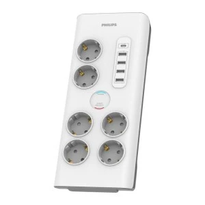Listwa Philips z filtrem przeciwprzepięciowy i gniazdami USB + 6 gniazd schuko bez bolca