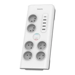 Chroń i ładuj swój sprzęt elektroniczny w bezpieczny sposób Wyposażony w 6 uziemionych gniazdek francuskich. Zintegrowane ładowanie USB dla urządzeń mobilnych o mocy 35 W. Zaprojektowany z myślą o ochronie sprzętu przed przepięciami. Automatycznie wyłącza zasilanie systemu w celu ochrony przed przepięciami. Z funkcją ładowania przez USB