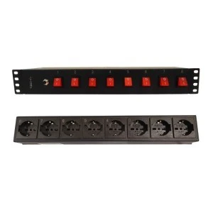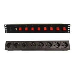 - Listwa zasilająca do szafy Rack 19", 1,5U, 8 tylnych uniwersalnych gniazd UNEL z wyłącznikami na froncie, kabel 1,8m