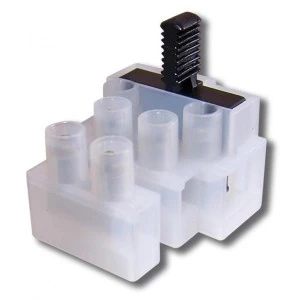 Listwa zaciskowa z bezpiecznikiem służy do łączenia przewodów elektrycznych i włączania elementów zabezpieczających (bezpieczników 5 x 20 mm) do obwodu. Listwa zaciskowa 1106-F/3P z bezpiecznikiem jest przeznaczona do łączenia obwodów elektrycznych przy użyciu przewodów miedzianych w miejscach, gdzie nie można zastosować listwy nośnej DIN TS i zacisku szeregowego RSP 4 (np. w małych puszkach instalacyjnych, przy lampach itp.). Oferowana w wersji 3 polowej. Do każdej listwy jest dołączony zacisk bezpiecznika. Jednopolowa wersja listwy z bezpiecznikiem posiada zacisk z boku obudowy, umożliwiający połączenie z inną listwą, jedno- lub wielopolową. Można w ten sposób złożyć kompaktową listwę z większą ilością zacisków bezpieczników. Materiałem izolacyjnym listwy jest przezroczysty poliamid PA 6 (palność V2 wg UL 94), a materiałem izolacyjnym zacisku bezpiecznika jest czarny poliamid PA 6.6 (palność V2 wg UL 94). Elementy łączące są wykonane z ocynkowanej galwanicznie stali (śruby są umieszczone w tulejach i zabezpieczone przed wypadnięciem), a elementy przewodzące listwy są mosiężne, niklowane galwanicznie, a elementy przewodzące w zacisku bezpiecznika wykonane są ze stali nierdzewnej. Listwę można stosować w temperaturze zewnętrznej od -5°C do +100°C. Produkt posiada znak, certyfikat VDE i jest testowany zgodnie z EN 60598-1 i EN 6017-6.