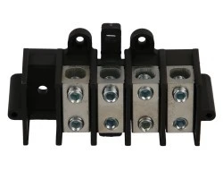 Uniwersalna listwa zaciskowa ZGX, czterobiegunowa z ośmioma otworami, w kolorze czarnym, dla przewodów o przekroju od 1,5 do 35 mm2, w kompaktowej obudowie o małych wymiarach, wykonanej z tworzywa PA6 bez halogenowego, sklasyfikowanego w najwyższym standardzie palności UL V-0 (test pionowego palenia), możliwy montaż listwy zarówno na szynie TH jaki i bezpośrednio na płycie montażowej, z zaciskami na śrubę sześciokątną, które pozwalają na łatwe i mocne dokręcanie przewodu. Listwy ZGX są testowane i certyfikowane zgodnie z normą EN 60947-7-1:2012.