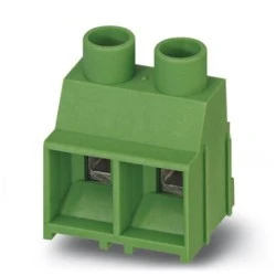 Terminal przyłączeniowy do PCB, prąd znamionowy: 32 A, napięcie znamionowe (III/2): 1000 V, przekrój znamionowy: 4 mm², liczba potencjałów: 3, Liczba rzędów: 1, Liczba pinów na rząd: 3, rodzina produktów: MKDS 5 HV, wymiar rastra: 9,52 mm, rodzaj przyłącza: Zacisk śrubowy z tuleją zaciskową, montaż: Lutowanie na fali, kierunek przyłączania przewód/płytka: 0 °, kolor: zielony, Układ pinów: Ustawienie pinów w zygzak M, Długość pinu [P]: 5,2 mm, rodzaj opakowania: zapakowany w karton. Produkt można łączyć rzędowo do różnej liczby biegunów! Przy zwykłym 2-biegunowym zastosowaniu zalecany jest model MKDSV 5 HV z czopami zabezpieczającymi przed przekręceniem.