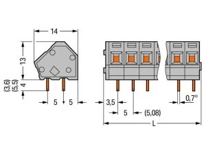 Złączka do płytek drukowanych pomarańczowa raster 5/5,08mm 236-746 /100szt./