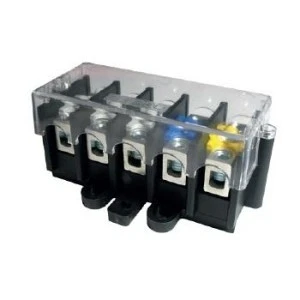 Listwa zaciskowa DTS 5x35 w kolorze czarnym. Zakres połączeń wejść od 1,5 mm2 do 50 mm2 i zakres połączeń wyjść od 1,5 mm2 do 50 mm2. Temperatura pracy od -25 °C do +100 °C. Materiał obudowy - poliamid PA 6, V0, pokrywa - przezroczysty poliwęglan - PC. Zgodna z normą IEC 60947-7-1. Blok można zamocować na szynie DIN 35 za pomocą uchwytu - nr art. UD0001.21. Na życzenie zamontujemy uchwyt w fabryce. Nie można go doposażyć.