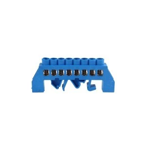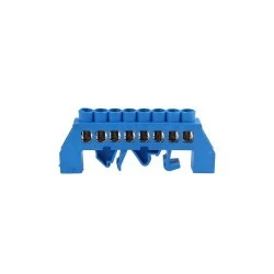 Listwa zaciskowa izolowana do przewodu neutralnego (niebieska). Stosowana w rozdzielniach elektrycznych ułatwia rozdział potencjałów i okablowania. Izolacja listwy zmniejsza ryzyko przypadkowego doziemienia. Nadaje się do montażu na szynę DIN lub płytę montażową.
