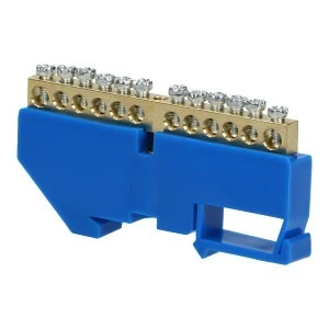 Listwa zaciskowa do przewodu neutralnego (niebieska). Stosowana w rozdzielniach elektrycznych ułatwia rozdział potencjałów i okablowania. Nadaje się do montażu na szynę DIN.
