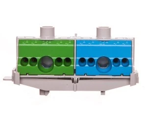 Listwa zaciskowa PE i N na szynę 80 A 2x(1x25mm + 4x4mm2) niebiesko‑zielona FC PN 10 26001206