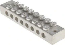 Podwójne bloki uziemienia śrubowego. Uziemiające bloki połączeniowe wyprodukowane od Bass do BS2498 z matowym wykończeniem płytki elektrocynowej do BS1872 Szerokość 19 mm, wysokość 12 mm