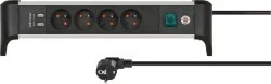 Listwa zasilająca Alu‑Office‑Line z 4 gniazdami z wyłącznikiem biurko z kablem 1,8 m i 2x USB, maks. 3100 mA 1391044410