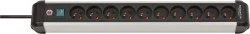 Listwa zasilająca Premium-Alu-Line z 10 gniazdami w smukłej obudowie służy jako optymalne źródło zasilania w biurze domowym lub w miejscu pracy. Listwa zasilająca z podświetlanym wyłącznikiem bezpieczeństwa (dwubiegunowym) i oszczędzającymi miejsce gniazdami w układzie 45° może być zamontowana na ścianie lub nawet na nodze stołu dzięki innowacyjnej koncepcji montażu. Gniazdo wielokrotne z podwyższoną ochroną styków przekonuje również następującymi cechami: