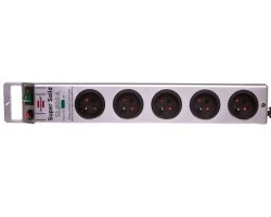 Wspomniana listwa została wyposażona łącznie w pięć gniazd z bolcem - każde z nich zostało ustawione pod kątem. Warto również wspomnieć, że długość przewodu zasilającego dla tego modelu jest równa 2,5 metra. Ten model posiada praktyczny przełącznik włącz//wyłącz, a także niezwykle użyteczną ochronę przeciwprzepięciową. Dużą zaletą tego modelu jest z pewnością materiał, jakiego użyto do wykonania tego modelu. Jest to bowiem w tym przypadku najwyższej jakości tworzywo termoplastyczne. Oznacza to, że tworzywo nie przywiera do szkła, metali oraz do innych tworzyw. Jest ono też wyjątkowo odporne na ścieranie oraz na zarysowania, co ma realny wpływ na dłuższy dobry wygląd tego modelu.