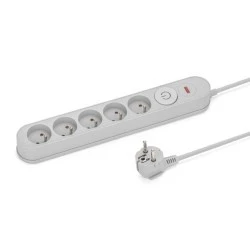 Przedłużacz 5-gniazdowy, 1,5m szary +filtr przepięciowy, 3x1,0mm OWY / 24925