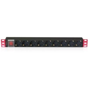 TechlyPro I-CASE STRIP-91UD, P/N: 366709 – Listwa zasilająca PDU Rack 19” 1U 9x uniwersalne gniazdo Schuko, podświetlany włącznik z osłoną, 250V/16A, kabel 2m