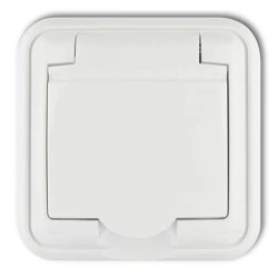AKCENT Gniazdo bryzgoszczelne z/u IP44 klapka biała GPH-1AZ/00/w