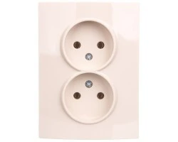 LOGI Gniazdo podwójne 2x2P kompletne śrubowe 16A 250V Kremowy 25155