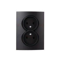 LOGI Gniazdo podwójne 2x2P kompletne z przesłoną styków Czarny mat 33608