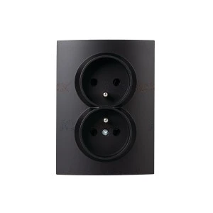 LOGI Gniazdo podwójne 2x2P+Z kompletne z przesłoną styków Czarny mat 33614