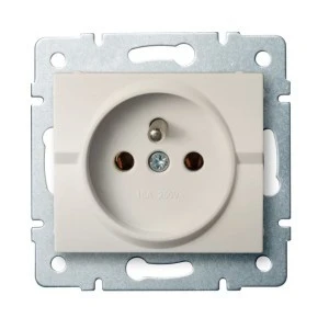 LOGI Gniazdo pojedyncze 2P+Z z przesłoną styków śrubowe 16A 250V Kremowy 25149