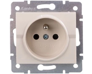 LOGI Gniazdo pojedyncze 2P+Z z przesłoną styków śrubowe 16A 250V Kremowy 25149
