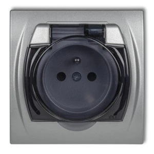 LOGO Gniazdo bryzgoszczelne z/u (klapka dymna) srebrny metalik 7LGPB‑1zdp
