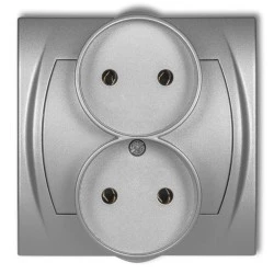 LOGI Gniazdo podwójne 2x2P kompletne śrubowe 16A 250V Srebrny 25214