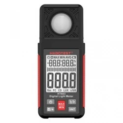 Habotest HT603 służy do mierzenia natężenia światła w zakresie 0~100000 LUX / 0~10000 FC. Sprawdzi się w takich dziedzinach jak przemysł elektryczny lub do celów inspekcyjnych pomieszczeń. Wyróżnia się krótkim czasem reakcji, a obrotowa sonda zwiększa wygodę użytkowania. Co więcej, za pomocą urządzenia możesz również zmierzyć poziom wilgotności otoczenia oraz temperaturę. Dodatkowo HT603 zasilają 3 baterie AAA.