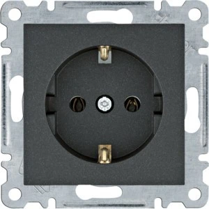AS Gniazdo pojedyncze z uziemieniem schuko z przesłonami torów prądowych czarny metalik GP-1GSP/m/33