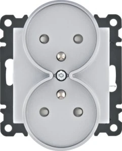 Lumina Gniazdo zasilające z uziemieniem podwójne z przesłoną styków 16A/250VAC srebrne WL1342