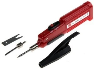 Nasadka zabezpieczająca, końcówka ładowarki. Zestaw do lutowania akumulatora RS. Idealne, przenośne lutownice. Kompaktowe rozmiary 6 W/4,5 V battey obsługiwane 3 baterie AA Przełącznik włączania/wyłączania Kontrolka Nasadka zabezpieczająca Zmieniacz końcówek