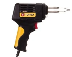 Lutownica 44E002 to produkt znajdujący się w ofercie katalogowej polskiego lidera w dziedzinie produkcji narzędzi ręcznych dla amatorów i profesjonalistów - firmy TOPEX. Prezentowany model należy do gatunku lutownic transformatorowych, które osiągają wysokie temperatury pracy dzięki przepływie prądu o dużym natężeniu przez drut, będący jednocześnie jej grotem.
