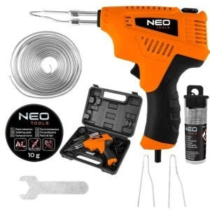 Lutownica transformatorowa 200 W, w walizce i NEO, charakteryzująca się wbudowaną możliwością wymiany grotów oraz opcją szybkiego nagrzewania. Wykonana z wytrzymałego na długotrwałe użytkowanie korpusu z tworzywa sztucznego, oferuje ergonomiczny kształt ułatwiający pracę.