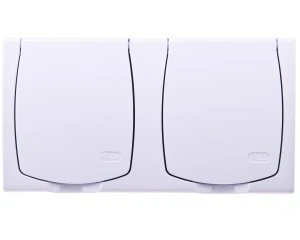 DELFINA Gniazdo hermetyczne podwójne z/u IP44 klapka biała GNH-2DZ/00/w