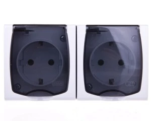 Hermes2 Gniazdo hermetyczne podwójne z/u 16A SCHUKO IP44 z klapką biało-dymne 1025-01