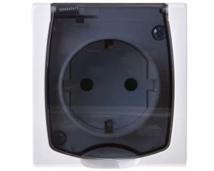 MADERA Gniazdo hermetyczne pojedyncze z/u Schuko IP44 z przesłonami klapka przezroczysta białe GNH-1NSP/00/d