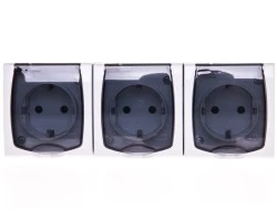 MADERA Gniazdo hermetyczne potrójne z/u IP44 z przesłonami klapka przezroczysta białe GNH-3NZP/00/d