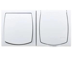 MADERA Łącznik hermetyczny świecznikowy + gniazdo hermetyczne pojedyncze z/u z klapką przezroczystą biały ZH-NŁ2G/00/d